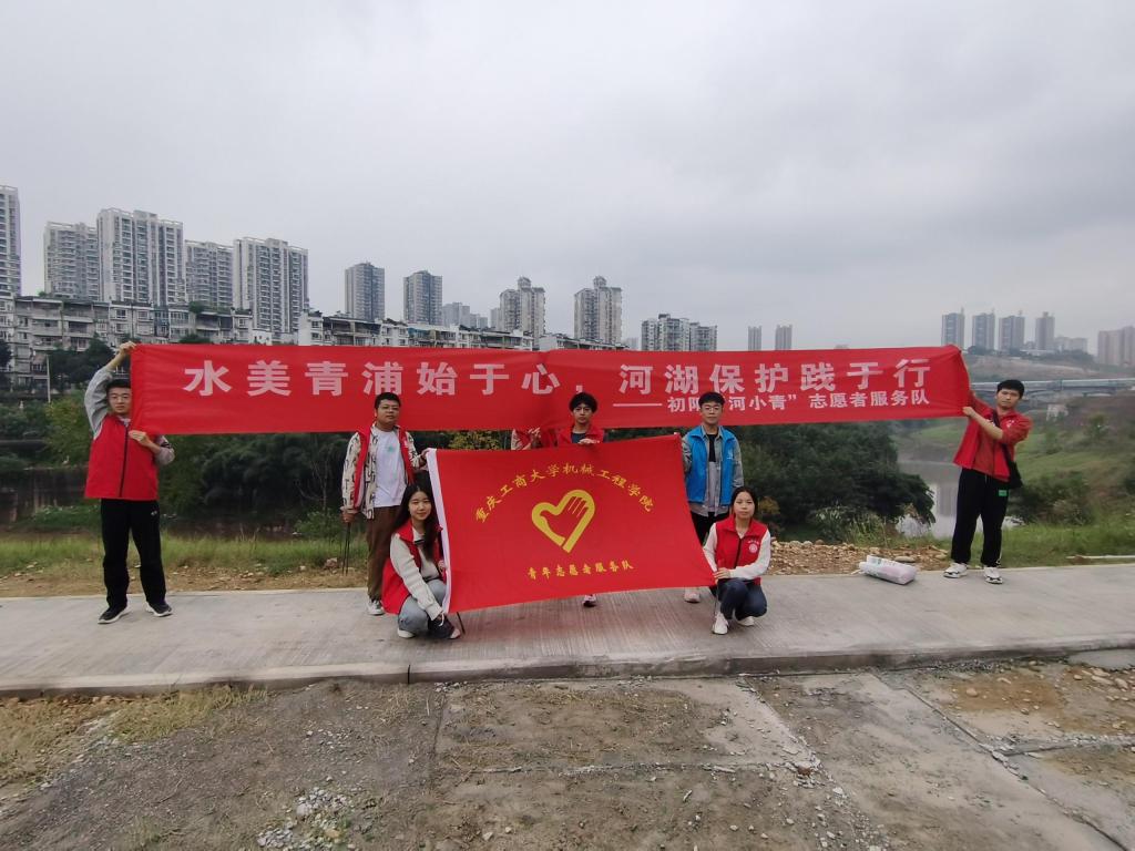 为进一步促进学生全面发展,提升学生河湖环境保护意识,发扬“我爱劳动”光荣精神,2023年11月4日9001诚信金沙“初阳”青年志愿者服务队组织前往重庆市巴南区渝纱社区开展“水美青浦始于心,河湖保护践于行”护河志愿活动。