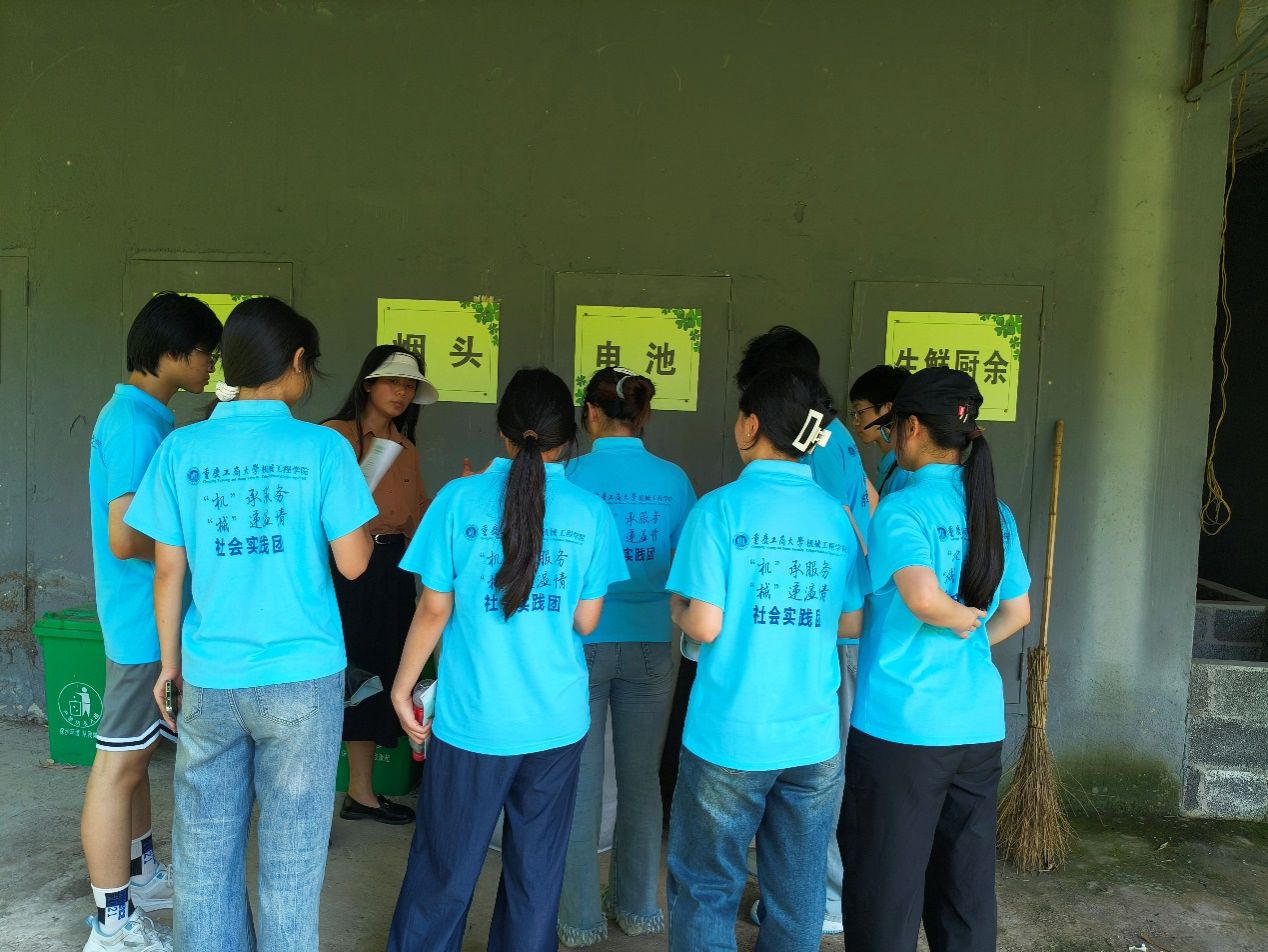 实践团队通过科普宣讲等形式,向居民详细讲解垃圾分类的意义与方法。团队成员结合当地实际,重点介绍了可回收物、厨余垃圾、有害垃圾和其他垃圾的分类标准,并针对农用薄膜、农药瓶等废弃物提出具体处理建议。“我们发现小朋友对‘可腐烂垃圾’和‘不可腐烂垃圾’的分类方式更为熟悉,于是调整了讲解策略,用‘能喂猪的’‘能卖钱的’‘有毒的’‘没用的’等通俗表述进行类比。这种“接地气”的方式让小朋友们能快速理解 。