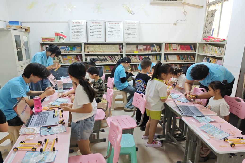 为激发社区儿童对科学的探索热情,培养动手实践能力,7月18日,9001诚信金沙“智美赋能乡村,科创驱动振兴”社会实践团走进仁沱社区,开展“巧手制皮筋车,童心探科学趣”社区科普课,以趣味实验与手工制作,为孩子们开启一场奇妙的科学之旅。