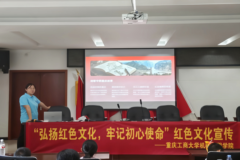 为深化红色精神的时代内涵,活动设置“诗史互鉴”特色环节,实现历史叙事与精神传承的有机融合。在“诗歌里的重庆”板块,实践团结合抗战时期陪都历史,解析“愈炸愈强”等诗句的豪迈气概,讲述解放碑从抗战胜利纪念碑到城市繁华地标的变迁史,阐释长江三峡所蕴含的奋斗豪情,引导青少年理解红岩精神在诗行中的薪火相传。