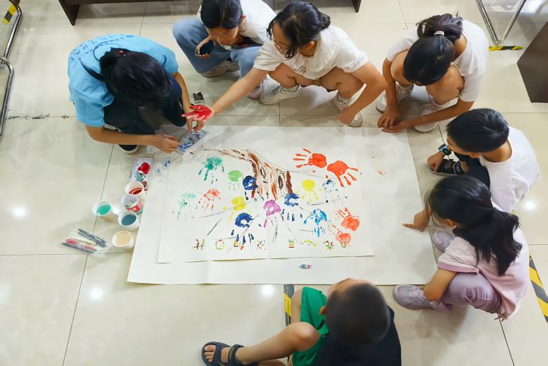 活动最后,团队成员为孩子们分发画纸、颜料与彩笔,引导他们“将负面情绪转化为创意画面”。“生气可以是喷火的小龙,难过可以是哭泣的小雨滴……”在团队成员的启发下,孩子们投入创作:有的画“作业怪兽被魔法笔打败”,有的画“难过的小云朵遇见太阳变开心”。