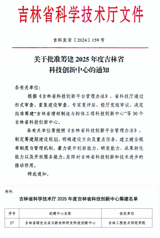 近日,吉林省科技厅印发《关于批准筹建2025年度吉林省科技创新中心的通知》,批准best365化学与工业生物工程交叉学科研究院申报的“吉林省绿色合成与新材料研发科技创新中心”作为筹建项目。此次获批是学校在省级科技创新平台建设方面取得的又一重要成果。截止目前,best365科研平台数目已突破30个,在科研平台建设方面取得了新的突破。对于推动区域科技创新、重大关键核心技术研发与应用,促进科技成果转化,服务重点支柱产业,将起到重要的支撑作用。学校将按照《吉林省科技创新平台管理办法》,做好筹建期建设规划,明确建设方向及重点任务,建立健全规章制度与管理机制,着力提升中心的创新能力、研发能力、成果转化能力以及开放服务能力,为推动吉林省科技创新和技术进步作出应有贡献。
