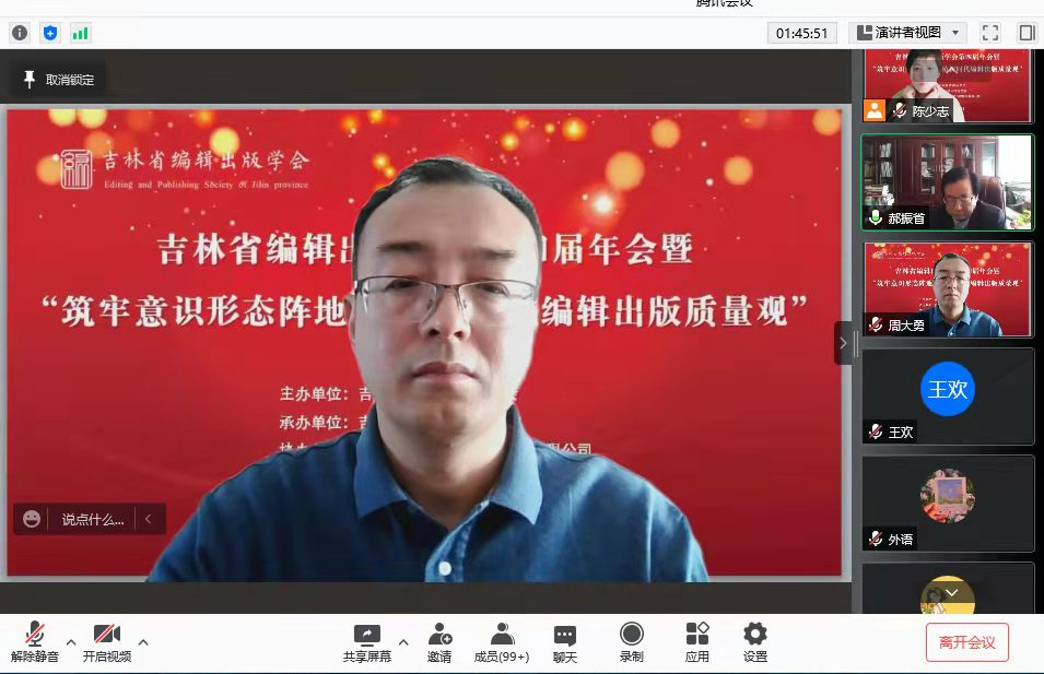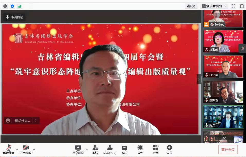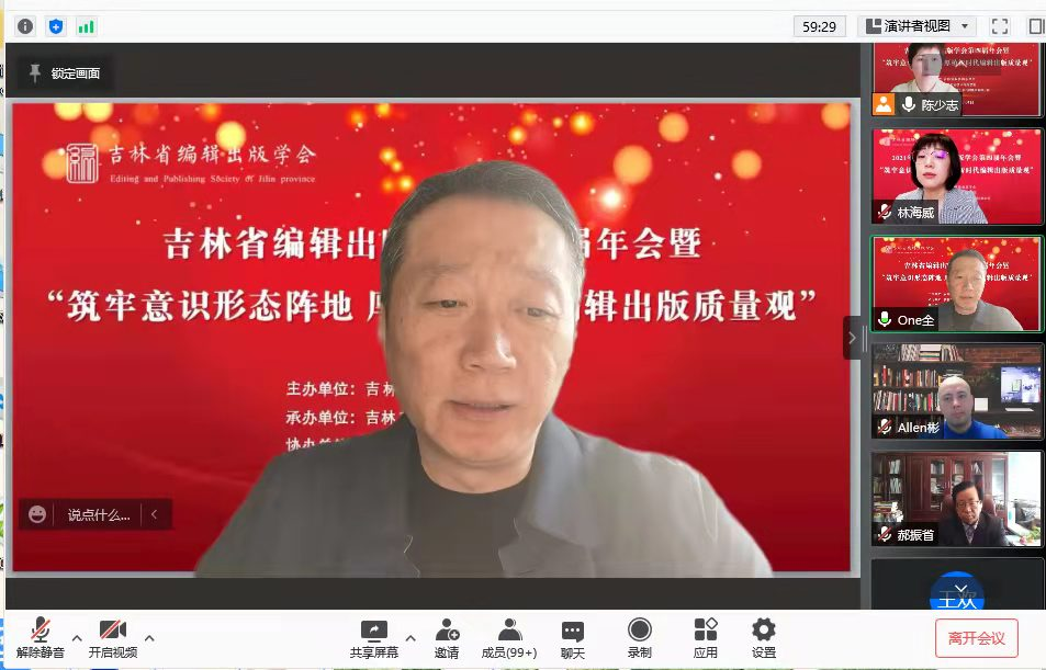 10月30日,由吉林省编辑出版学会主办、best365中国官方网站承办,吉林东北亚出版传媒集团有限公司协办的2021年吉林省编辑出版学会第四届年会暨“筑牢意识形态阵地,厚植新时代编辑出版质量观”学术研讨会顺利召开。会议采用线上形式。