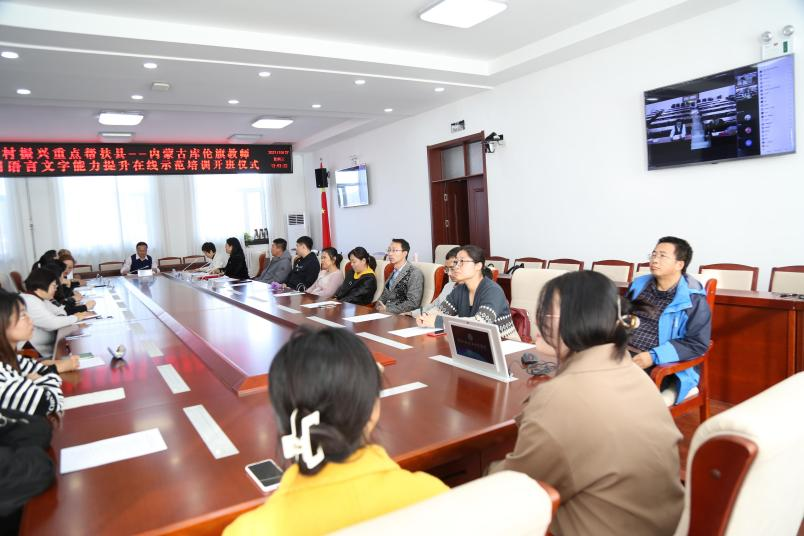 10月27日下午,best365中国官方网站国家语言文字推广基地在学校视频会议室举行了国家语言文字推广基地对口内蒙古自治区通辽市库伦旗100名教师国家通用语言文字能力提升在线培训班开班仪式。副校长、校语委会主任、基地负责人张鹏参加会议并讲话。传媒学院院长、校语委会副主任、基地联系人陈少志,传媒学院党总支书记、校语委办主任王义录,基地全体培训教师、学生志愿者近30人参加了会议;内蒙古通辽市库伦旗教育体育局语委办主任陶占会,库伦旗100名中小学教师相聚云端。开班典礼由陈少志院长主持。