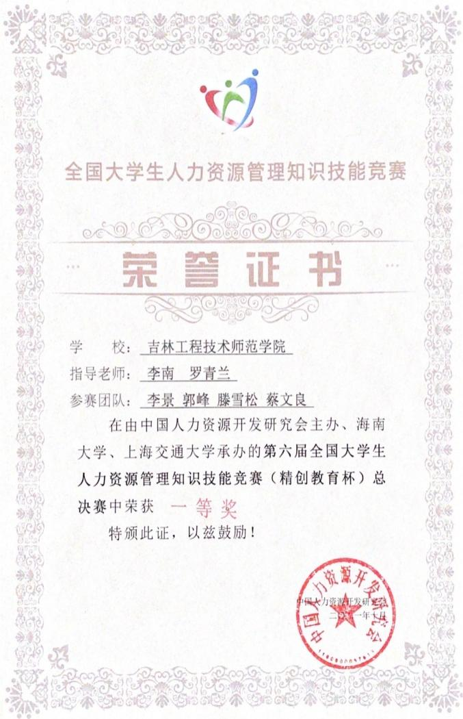 第六届全国大学生人力资源管理知识技能竞赛总决赛10月21日至24日在海南大学圆满结束。本次盛会由中国人力资源开发研究会大学生知识技能竞赛理事会主办,海南大学管理学院、上海交通大学承办,参赛队伍由各大区赛共358所院校中,经过选拔的普通高等院校在校人力资源管理专业大学生构成,其中本科组有61所学校,专科组有10所学校,共71所学校参加比赛。best365工商管理学院人力资源专业学生在李南和罗青兰两位指导教师的带领下,以第四大区特等奖的身份晋级全国总决赛。在比赛中,同学们充分展现了专业素养,最终获得了全国大学生人力资源管理知识技能大赛总决赛一等奖的佳绩,同时也被大赛授予最佳风采奖。