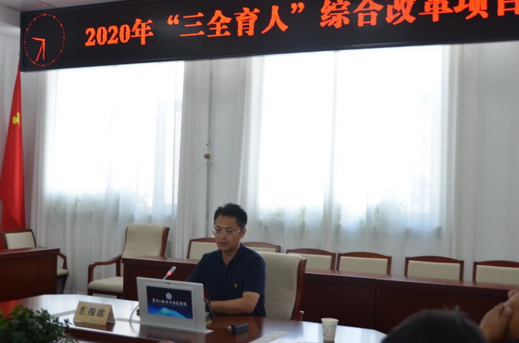 7月5日上午,学校2020年“三全育人”综合改革项目验收汇报会在410会议室举行。党委宣传部、教务处、学工部、后勤管理处、工会、团委、马克思主义学院负责人和各项目负责人参加会议。党委副书记陈景翊出席汇报会并讲话。汇报会由宣传部部长武德峰主持。
