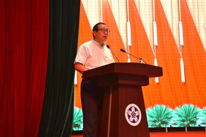 刘剑桥发表讲话,代表学校党委向受到表彰的先进集体和先进个人表示热烈的祝贺,向“光荣在党50年”的老党员表示崇高的敬意,向全校各级党组织和全体共产党员致以节日的问候。
