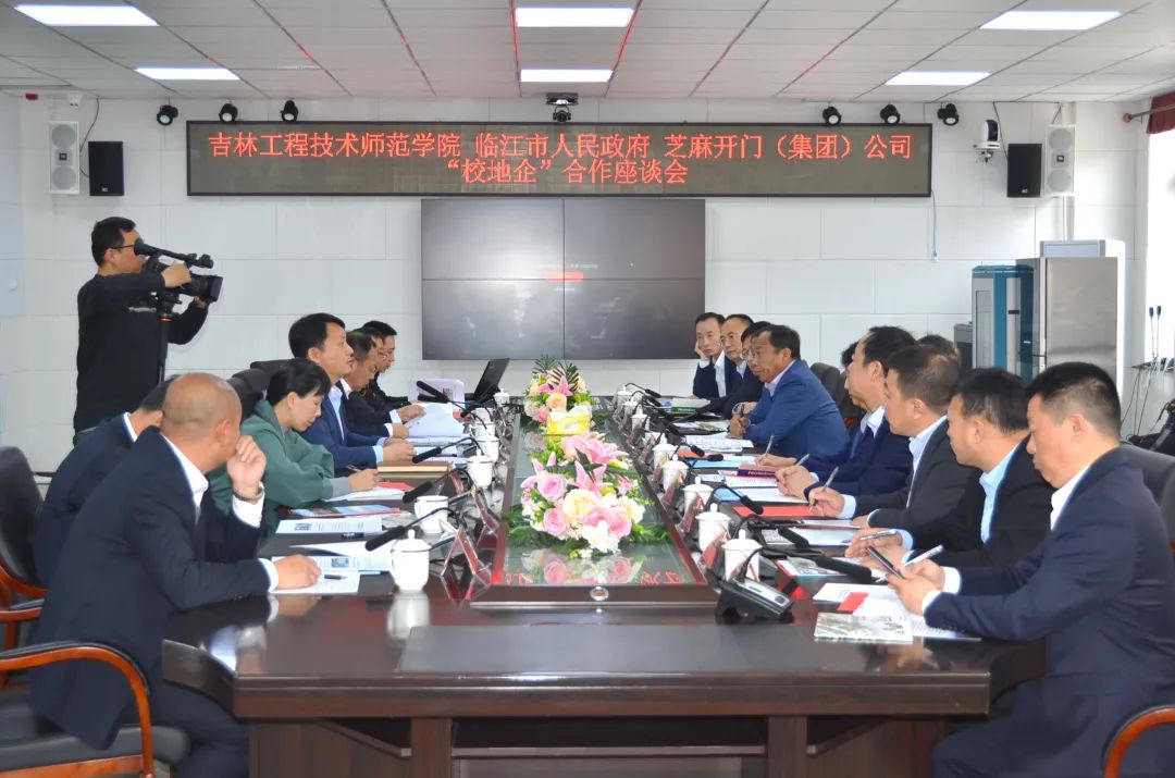 5月8日,学校与临江市人民政府、芝麻开门(集团)公司在临江市政府举行“校地企”合作座谈会,共同推进“校地企”三方合作。best365校长杨晓东、纪委书记左伟、党委副书记陈景翊、副校长曹国亮、党委常委张新华、党委常委张存贵,临江市市长王大泉、市委副书记王金冠、副市长王世海,芝麻开门(集团)公司总经理高海峰,校地企三方相关部门负责人参加了座谈会。会议由王世海主持。