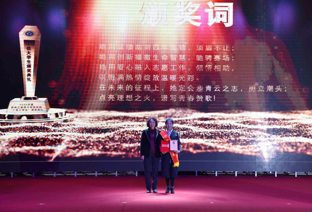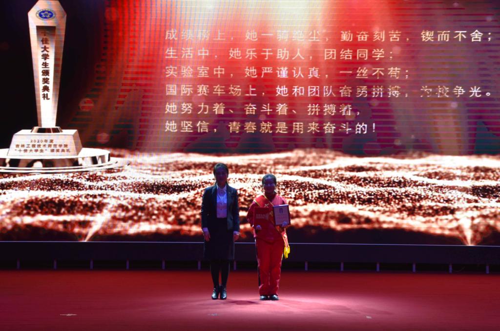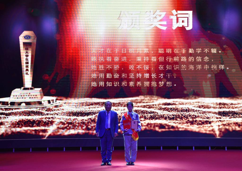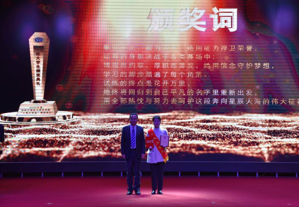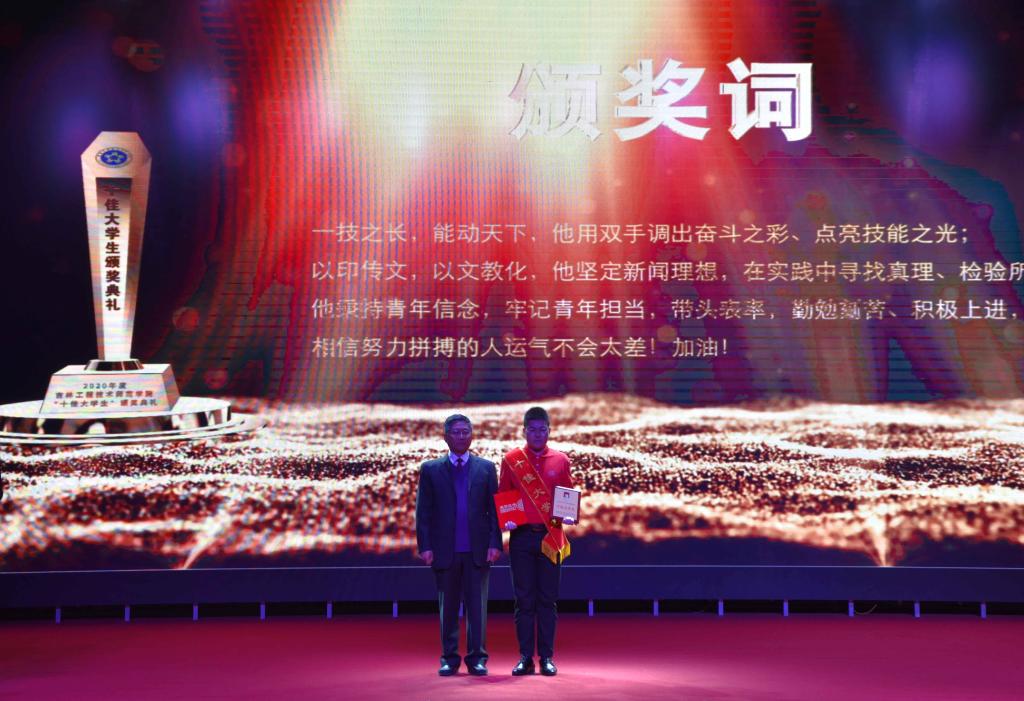 随后举行了2020年度“十佳大学生”颁奖典礼,在学业科研、科技创新、社会实践、志愿服务等方面有突出表现的10名十佳大学生上台领取了奖牌证书。