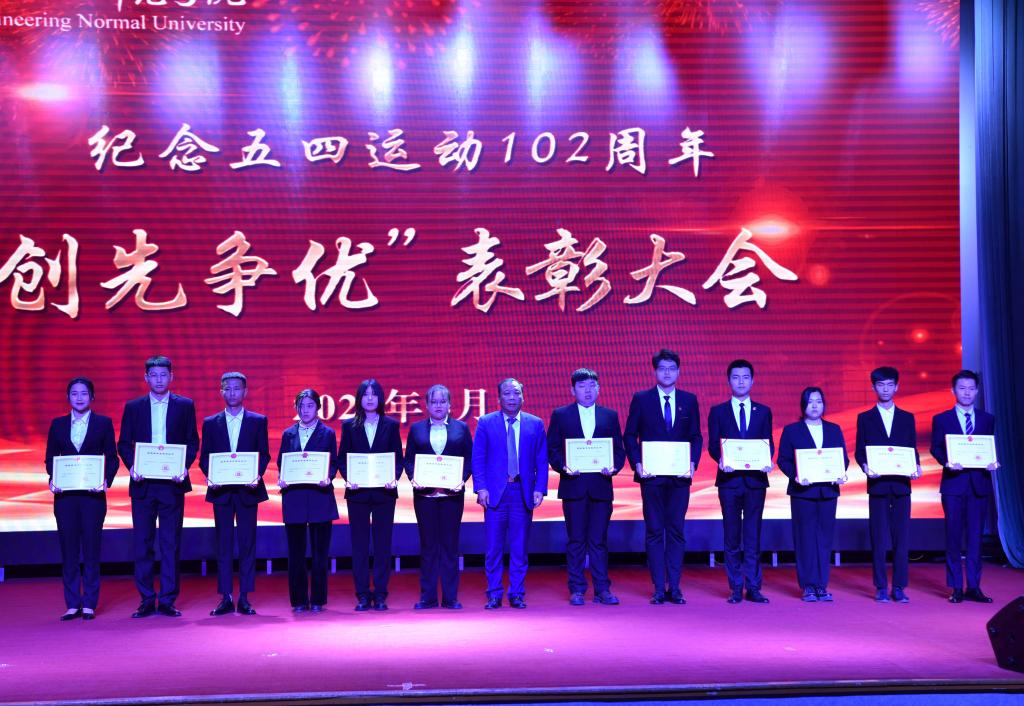 为传承和发扬五四精神,激发广大团员爱党爱国、勇于担当的责任感和使命感,4月30日,学校在报告厅召开纪念五四运动102周年“创先争优”表彰大会暨2020年度十佳大学生颁奖典礼。学校领导、党委常委、全体学生工作干部和团员青年代表300余人参加了会议。党委副书记陈景翊作讲话,团委书记邱敏主持会议。