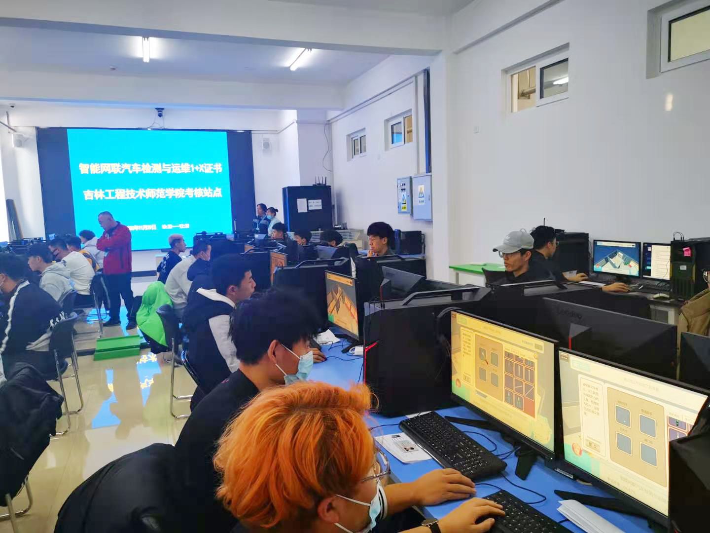 此次汽车工程学院共计30名学生报名参加了“智能网联汽车检测与运维证书”考核。考核工作得到了学校领导高度重视,在教务处、网管中心及汽车工程学院师生共同努力下,圆满地完成了best365首场1+X证书的培训、考核。