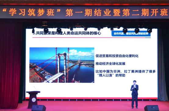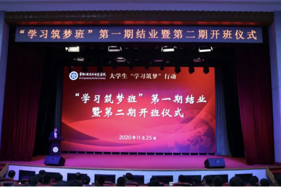 为认真学习贯彻党的十九大精神,落实立德树人根本任务,按照新时代新要求深入推进“青马工程”创新发展,用党的创新理论武装学生头脑,切实增强高校思想政治教育工作的针对性和实效性,11月25日下午,学校在报告厅举行大学生“学习筑梦”班第一期结业暨第二期开班仪式。校党委副书记陈景翊、党委组织部部长南立飞、党委宣传部部长武德峰、党委学生工作部部长王宝龙、校团委书记邱敏、马克思主义学院直属党支部书记叶万军、关工委秘书长刘晓敏、各学院党总支副书记以及“学习筑梦班”新老学员代表出席仪式。开班仪式由学工部副部长王旭主持。