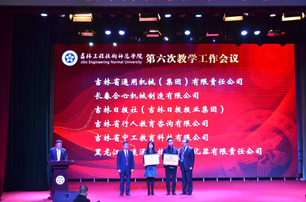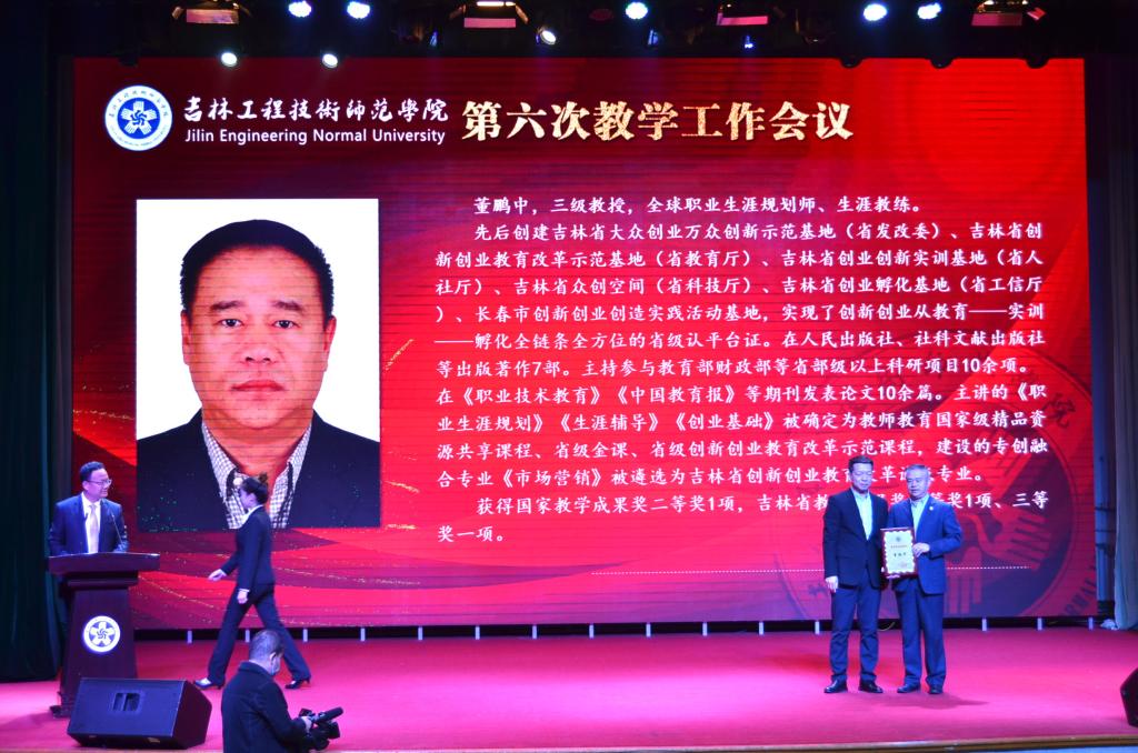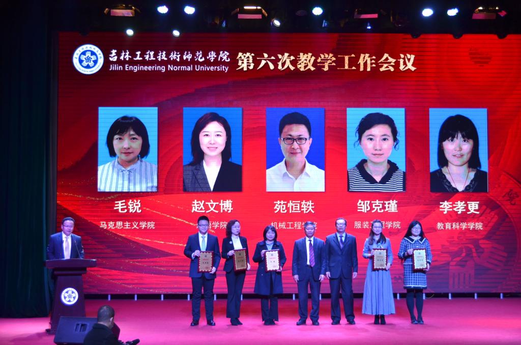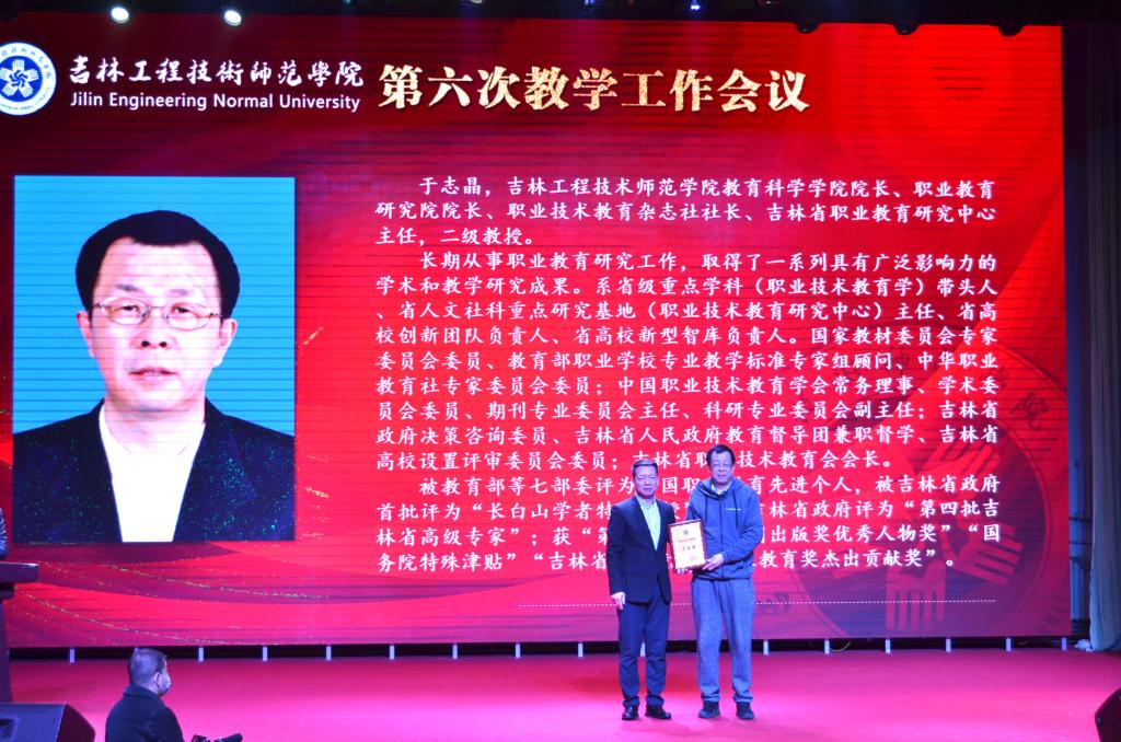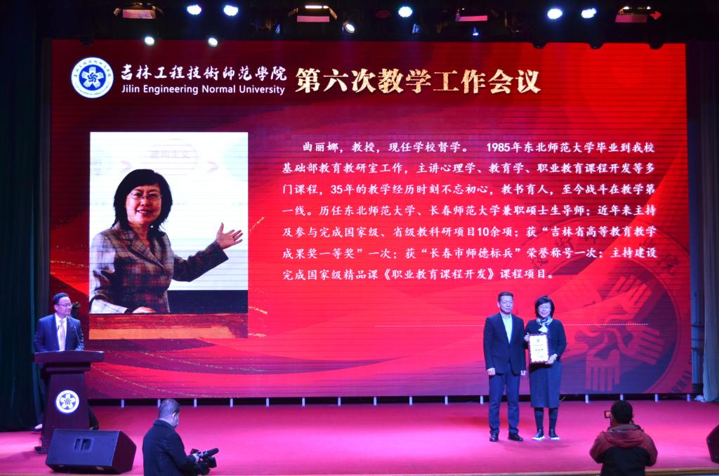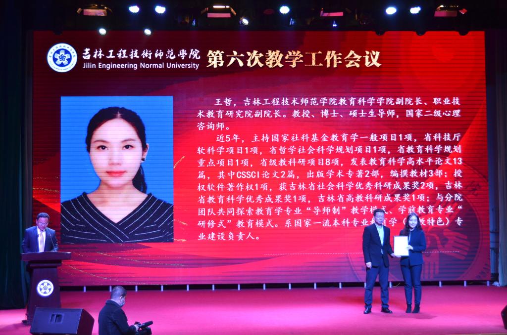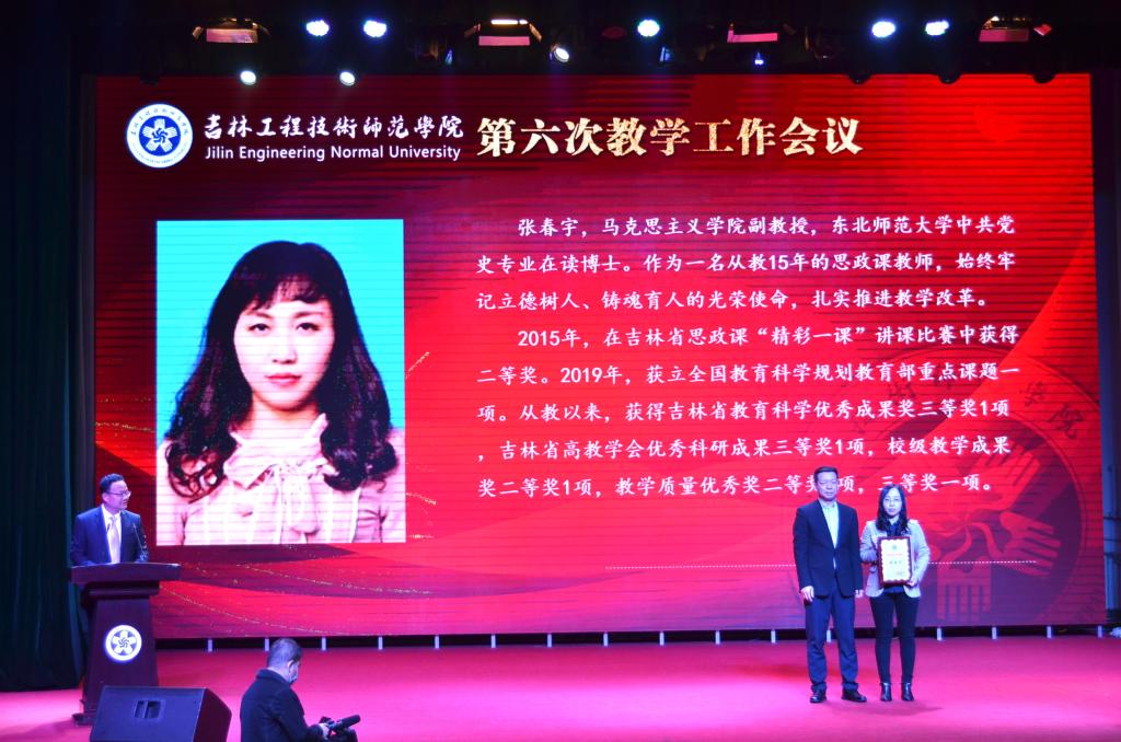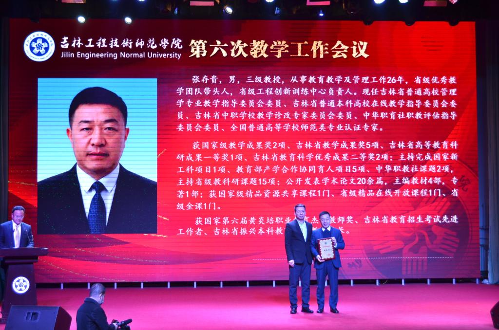 吉林省教育厅高教处处长宋辉为获得教学突出贡献奖的教师颁奖。