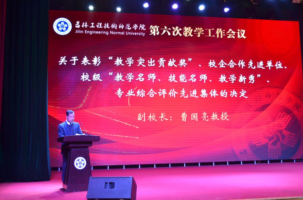 副校长曹国亮宣读了《关于表彰“教学突出贡献奖”、校企合作先进单位、校级“教学名师、技能名师、教学新秀”、专业综合评价先进集体的决定》。