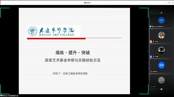 7月2日—7月4日,由服装工程学院和科研处联合主办的“艺术学科教师科研能力提升”线上研讨会成功举行。本次研讨会,邀请到了华中师范大学社会学院硕士生导师、湖北省社会发展与社会政策研究中心研究员刘杰博士,大连艺术学院服装学院院长、大连艺术学院非物质文化遗产研究中心主任张志宇教授和东北师范大学美术学院美术史论系主任、研究生导师、吉林省美术家协会理论艺委会秘书长李昕晖博士分别作主讲嘉宾。学校科研处领导、服装工程学院和艺术学院全体教师及部分学生参加本次研讨会。研讨会由服装工程学院副院长邹克瑾主持。