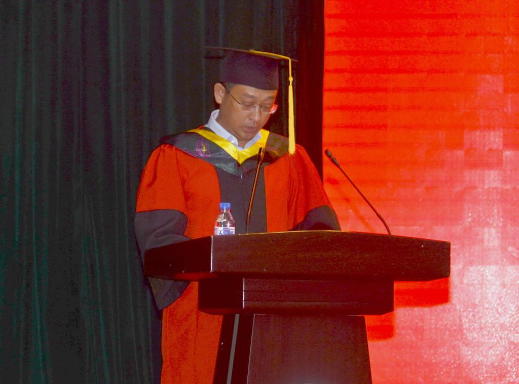 6月23日上午,学校在报告厅举行2020届学生毕业典礼暨学位授予仪式。由于疫情原因,2020届大部分毕业生无法返校现场感受毕业典礼、学位授予的神圣与庄严,学校通过网络直播典礼实况,表达母校对毕业学子的深切祝福,上好大学教育的最后一课。学校党政领导、相关职能部门负责人、各教学院(部)领导班子成员、教师代表、毕业生代表出席仪式现场。仪式由副校长张鹏主持。
