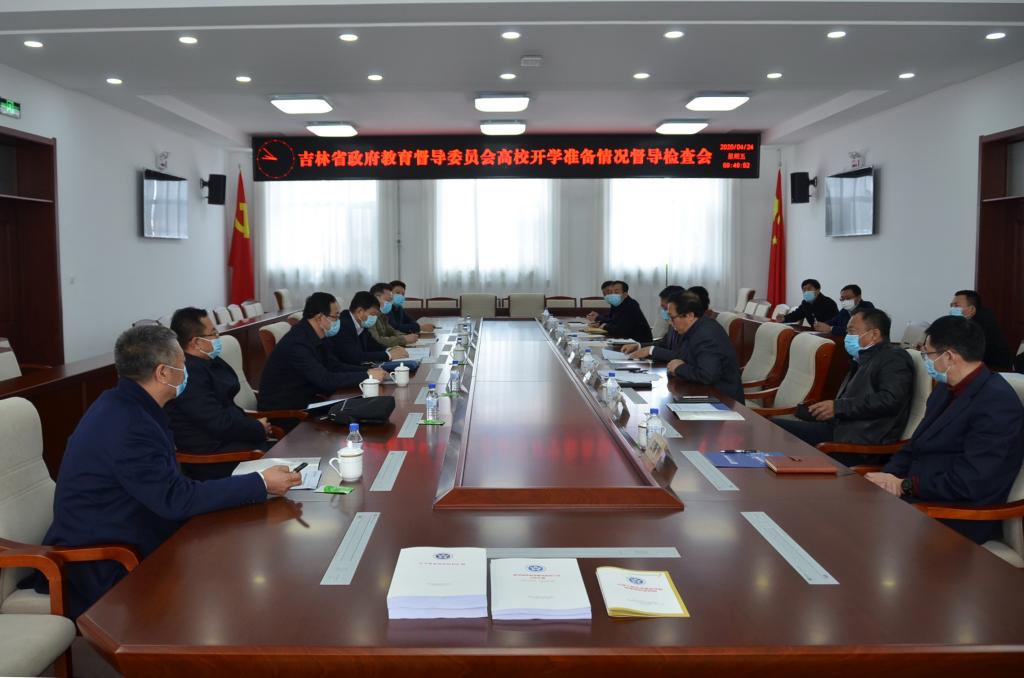 4月24日上午,省政府教育督导委员会第四工作指导组,对best365中国官方网站春季学期开学准备情况进行督导检查。省教育厅副厅长、省委教育工委副书记潘永兴带队,省教育厅民族教育处处长包国庆、教师工作处处长许治、高校思政处副处长乔东升参加检查,长春市教育局副局长张茂金、职成处长张德文陪同检查。学校党委书记栾立明、校长杨晓东、纪委书记左伟、党委副书记陈景翊、副校长曹国亮及疫情防控各工作组负责人参加了迎检活动。