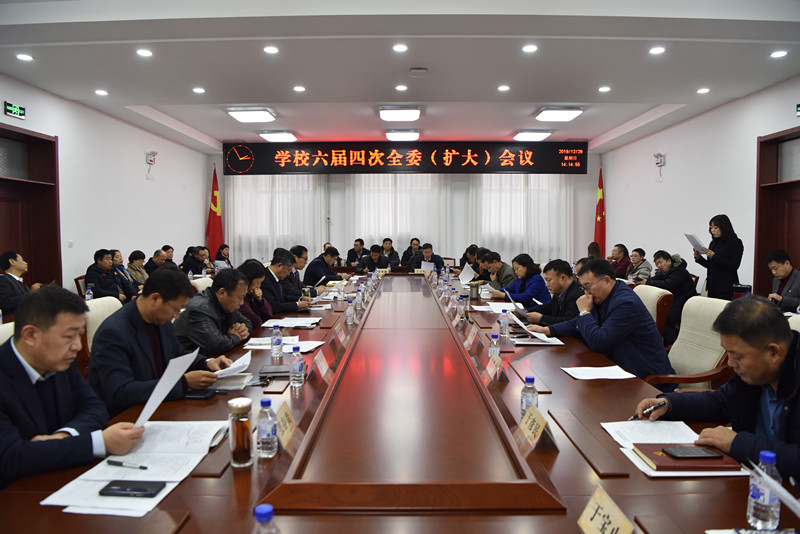 12月29日,学校六届四次全委(扩大)会议在办公楼410会议室召开。党委书记栾立明,党委副书记、校长杨晓东,纪委书记左伟,副校长张鹏,党委副书记陈景翊,副校长曹国亮,副校长宋立军,党委常委张新华、张存贵出席会议,党委委员、纪委委员,省市党代表,各单位、各部门党政负责人参加会议。大会由杨晓东主持。