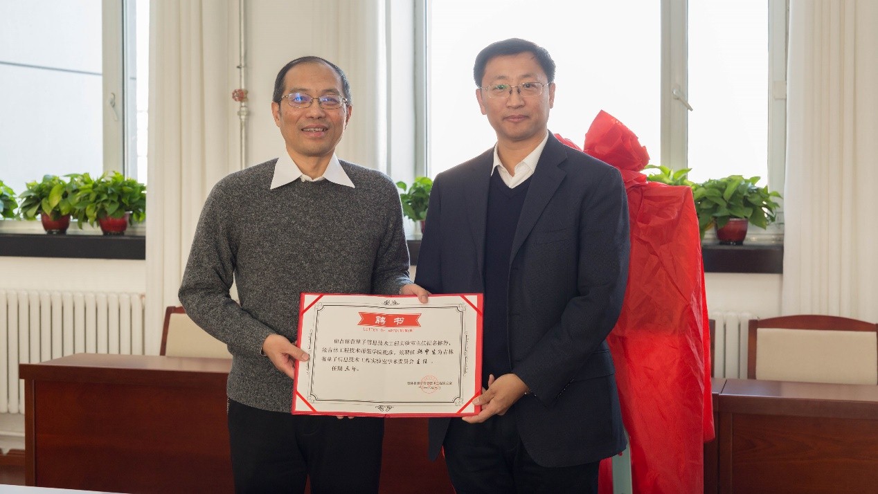 会上,宋立军为学术委员会成员颁发聘书,聘任中科院上海光机所韩申生研究员为实验室学术委员会主任。国家杰出青年基金获得者、浙江大学王晓光教授与宋立军共同为实验室揭牌。