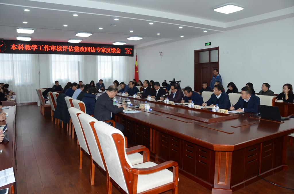 下午14:00,审核评估整改回访专家反馈会召开,张成龙主持会议。校领导、相关职能部门负责人、各学院院长和分管教学院长、教学质量监控与评价中心、教务处相关人员参加会议。