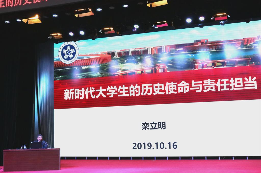 为深入贯彻习近平新时代中国特色社会主义思想和党的十九大精神,全面落实全国教育大会和全国高校思想政治工作会议精神,进一步加强和改进新生入学教育工作,引导帮助新生更快、更好地融入大学学习生活,夯实大学生思想政治工作基础。10月16日,学校在报告厅召开新生入学教育“书记第一课”专题讲座。党委书记栾立明为2019级新生作了题为“新时代大学生的历史使命与责任担当”的专题讲座。best3652019级全体新生参加此次讲座,长德与高新校区学生以网络直播的形式同步收看直播。本次讲座由学生工作部部长王宝龙主持。