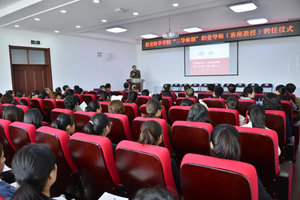 聘任仪式由教育科学学院党总支书记程宇主持,来自教务处、人事处、学工部、创业就业处、教学质量监控与评价中心、教师教育发展中心负责人,各分院分管教学副院长,教科院有关负责人、教师和部分学生代表等共计100余人参加了此次聘任仪式。