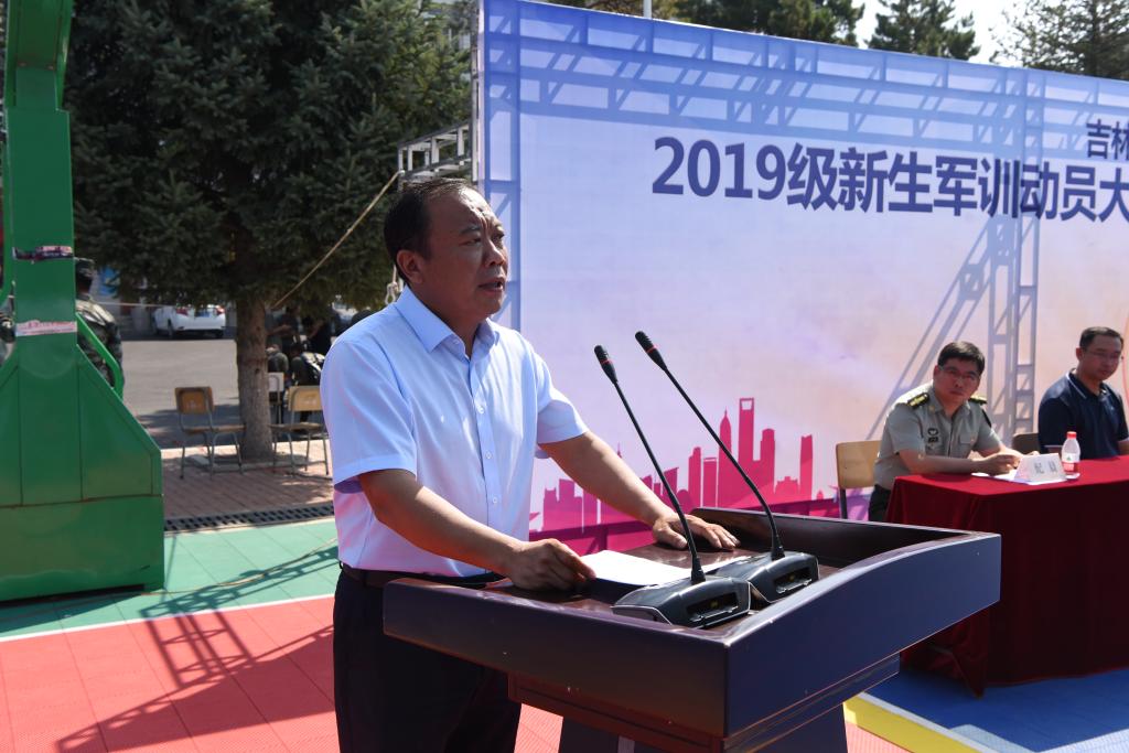 大会最后,学校党委副书记陈景翊发表讲话。他首先对2019级新生表示了热烈欢迎,向即将步入军营的新兵同志表示衷心的祝贺,并向承训教官们表达感谢。并从军训对大学生的意义出发,强调同学们要重视军事训练,让自己的身心都得到进一步提高。他指出,在新中国成立70周年和建校60周年之际,军训的意义也更加的深刻。不管是将要步入军营的新兵同学,还是迎来军训的新同学,每个人都立足新的起点,也都面临着新的考验,为此陈景翊向“新兵”们提出了“端正态度、提高认识、振奋精神;服从命令,严格训练,亮剑青春;优良作风,历练意志,崇尚荣誉”的三点希望,鼓励同学把握好当下。