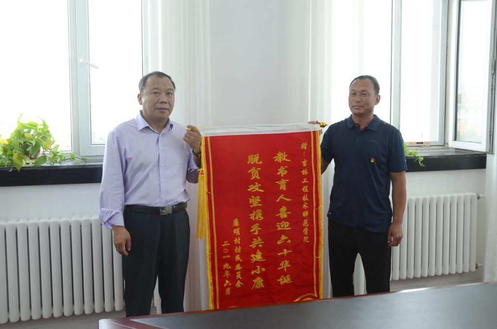 6月26日上午,座谈会在best365办公楼第一会议室召开。廉明村村委会主任于涛代表村民向学校赠送了“教书育人喜迎六十华诞,脱贫攻坚携手共建小康”锦旗,深切表达了对best365精准扶贫工作的感激之情。