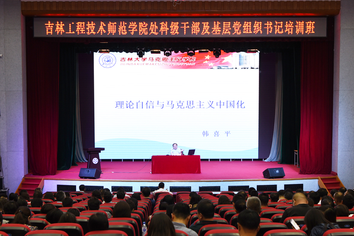会上,吉林大学党委宣传部部长、吉林大学中国特色社会主义理论体系研究中心常务副主任韩喜平教授作专题辅导教授作了题为《理论自信与马克思主义中国化》的辅导报告。韩喜平从理论自信的来源与逻辑、面临的新挑战以及实现理论自信的责任与担当三个方面,进行了深入解读。报告思想深邃,内涵丰富,理论性强,对深刻理解马克思主义思想理论体系,全面坚持和发展习近平新时代中国特色社会主义思想,坚定理论自信,具有重要的指导意义。