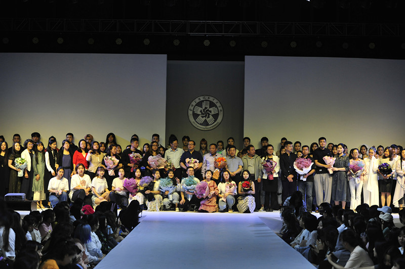 活动最后,服装学院设计师们全体谢幕,本次服装学院的7位研究生也参加了此次展示走秀,他们用自己的考研经历在向学弟学妹们传递着另一种力量,他们相信下一次的“遇见”将会有更好未来。老师和领导接受全体毕业生的谢意合影,此次展出活动完美落幕。