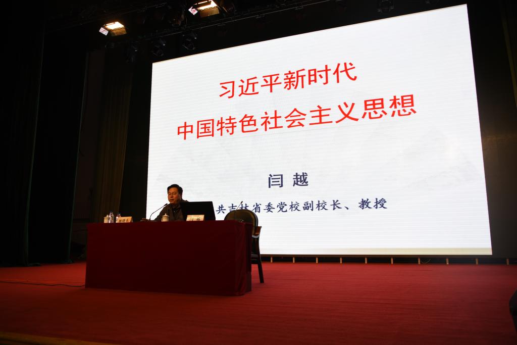 会上,中国科学社会主义学会常务理事,吉林省党建学会副会长、政治学学会副会长,社会学学会副会长,省委决策咨询委员、省政府立法咨询委员,吉林大学兼职教授,法学博士闫越教授作了题为《习近平新时代中国特色社会主义思想》的辅导报告。闫越从习近平新时代中国特色社会主义思想的时代背景、时代主题、理论框架、理论精髓、理论体系以及领导干部应当掌握的思想方法和工作方法等方面,对习近平新时代中国特色社会主义思想进行了深入地阐释和解读。报告站位高远、哲理深刻,对我们学习领会习近平新时代中国特色社会主义思想深刻内涵和核心要义,具有重要的指导意义。