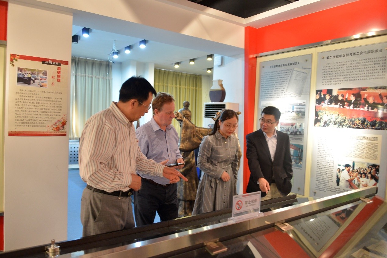 Ken Spours教授和苑大勇博士对中国现代职业教育史馆、职业教育发展数据库和数字化职业教育博物馆进行了参观。他表示,中国现代职业教育史馆通过实物和展览的方式记录职业教育的发展历程是非常有意义的,这非常有利于面向未来开展职业教育研究,以及更加科学的政策制定,他感到非常震惊,英国没有类似的机构,这种做法值得英国学习和借鉴。他将就best365的这一做法专门撰文,向英国推广。参观结束后,又开展了主题为“第四次工业革命和人工智能:未来的工作和终身学习”的学术研讨会,best365科研处处长崔亚新、教育科学学院院长于志晶以及教育科学学院的老师和职教研究院的研究人员参加了研讨会,就当前新革命背景下的职业教育改革发展进行了交流。会议还就未来在学术出版、建设国际学术共同体等方面进行了广泛的探讨,形成初步战略合作框架。