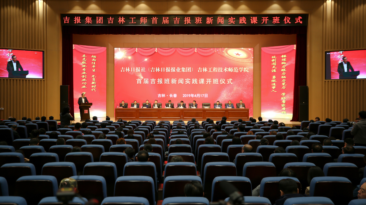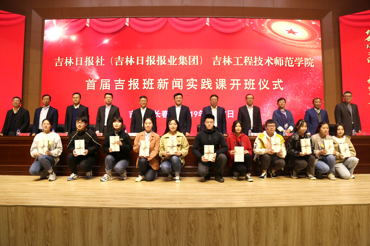 参加开班仪式的领导和嘉宾共同为学生颁发实习手册、实习记者证和纪念章。吉报班学生展示了精彩的才艺表演。