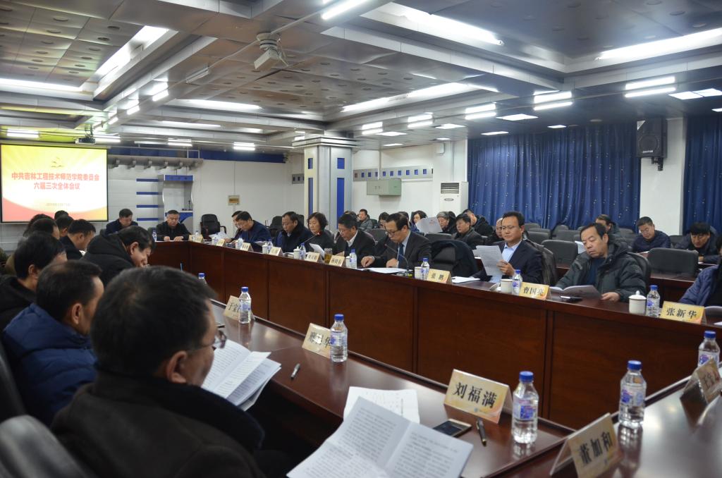 2019年1月15日,学校党委六届三次全委会在三教多功能厅胜利召开。学校党委书记栾立明,党委副书记、校长杨晓东,纪委书记左伟,副校长张鹏,党委副书记陈景翊,副校长曹国亮,副校长宋立军,党委常委、党办主任张新华,党委常委、教务处处长张存贵出席会议,党委委员,各级人大代表、政协委员,各民主党派负责人,各单位、各部门党政负责人参加大会。大会由杨晓东主持。