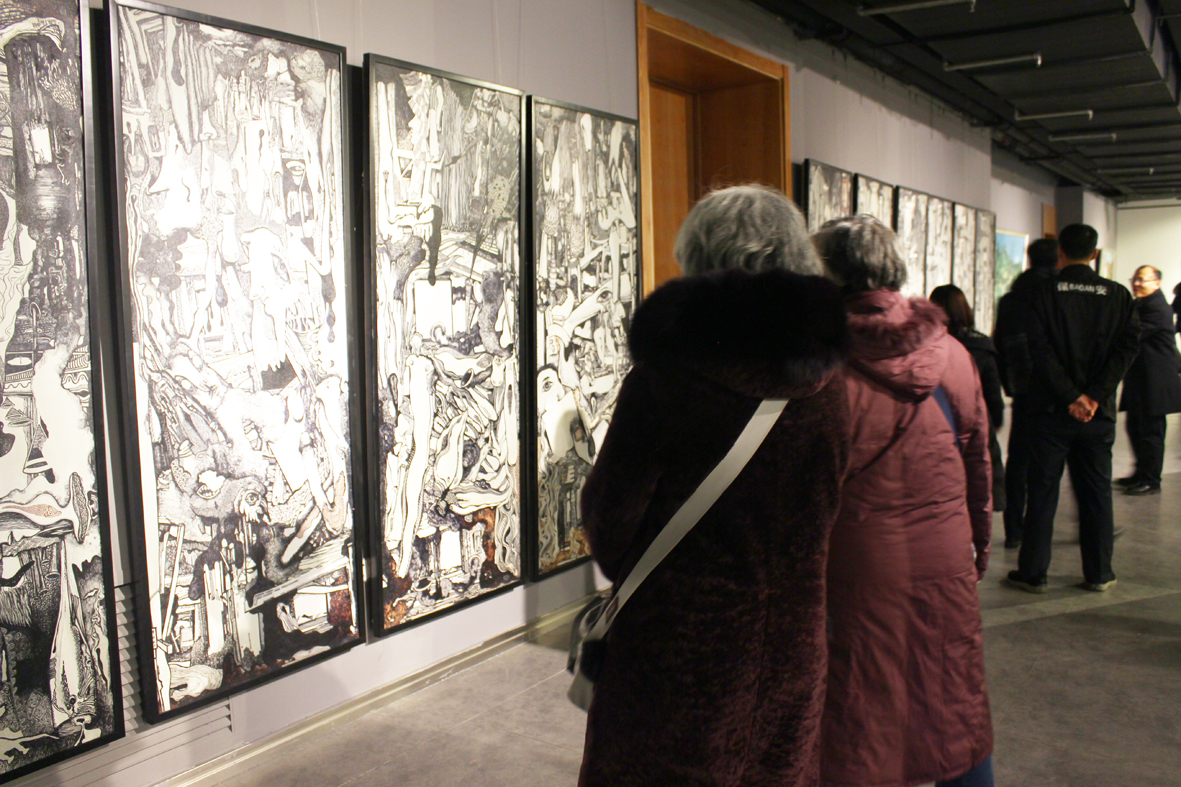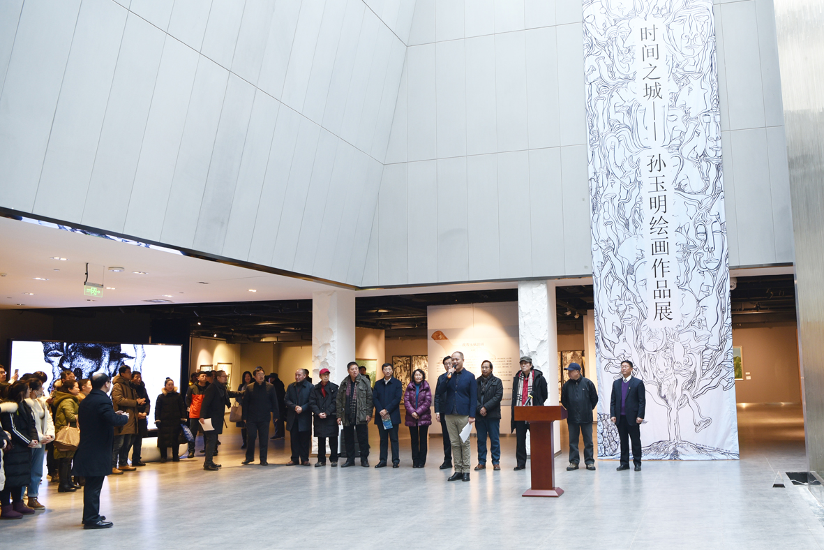 12月18日上午,“时间之城”——孙玉明绘画作品展在吉林省工艺美术馆开幕,本次展览于12月18日至28日免费向公众开放。