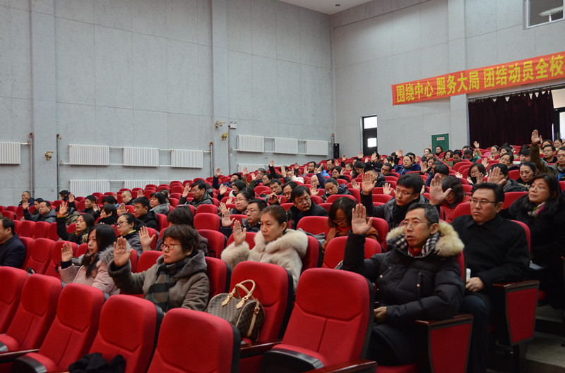 在雄壮的国际歌声中,第七届教职工暨工会会员代表大会胜利闭幕。