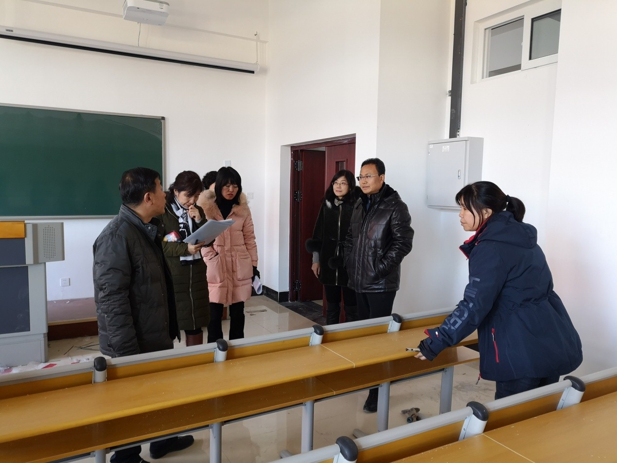 在考查中对每个实验室实验设备的安装情况、实验条件的准备情况、学生开学后实习实验实践课是否能够正常开课等进行了详细了解,对部分实验室存在的问题及时进行了指出和纠正。随后,张校长带领教务处和教学质量监控与评价中心的同志们来到电信实训中心,详细检查授课教室的准备情况,对每个教室的多媒体设备、黑板、桌椅数量进行了逐一清点,并亲自带领大家对部分教室桌椅进行了调串、摆放,为长德校区按时顺利开课提供了保障。