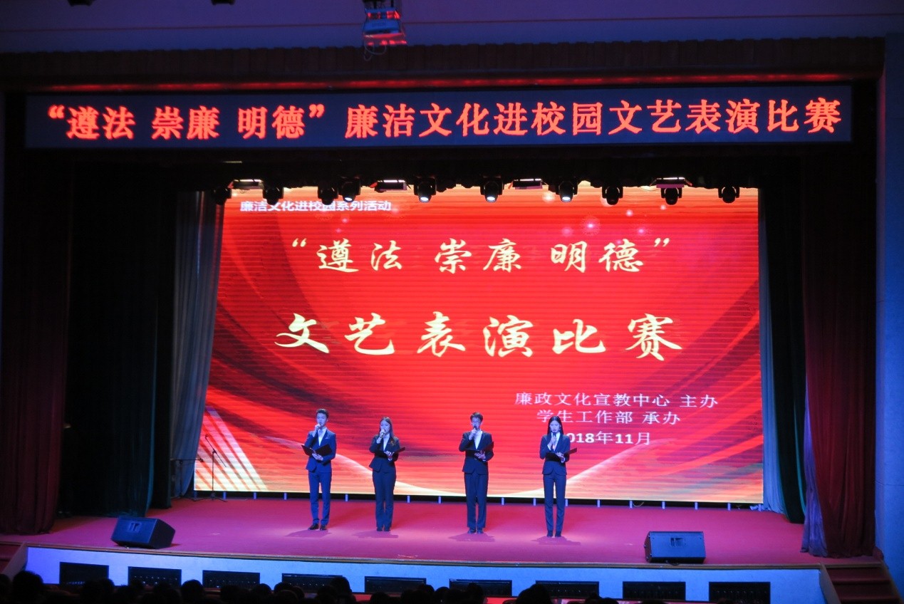 11月7日下午,由廉政文化宣教中心主办、学生工作部承办的廉洁文化进校园系列活动 “遵法 崇廉 明德”文艺表演比赛在best365报告厅举行。学生工作部副部长刘晓敏、校团委书记邱敏、马克思主义学院副院长毛锐担任本次比赛评委,来自best36513个学院的参赛选手给我们上演了一场精彩绝伦的主题文艺秀。