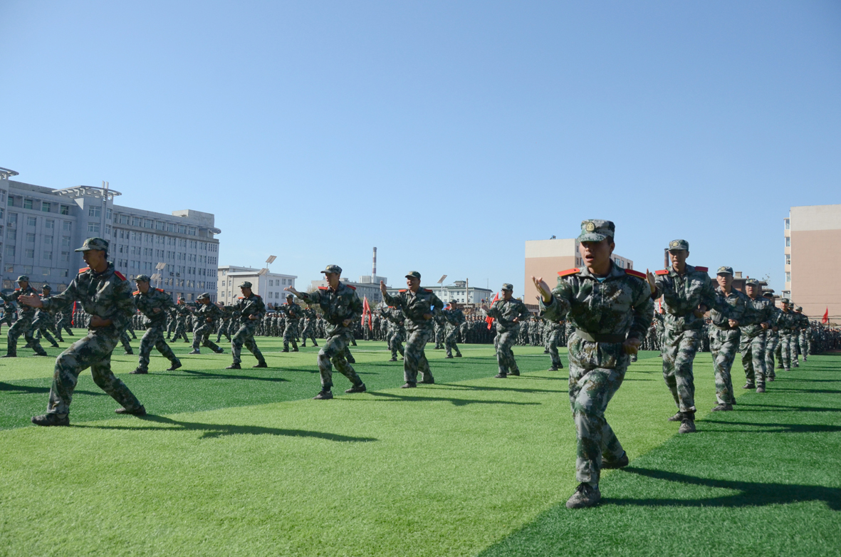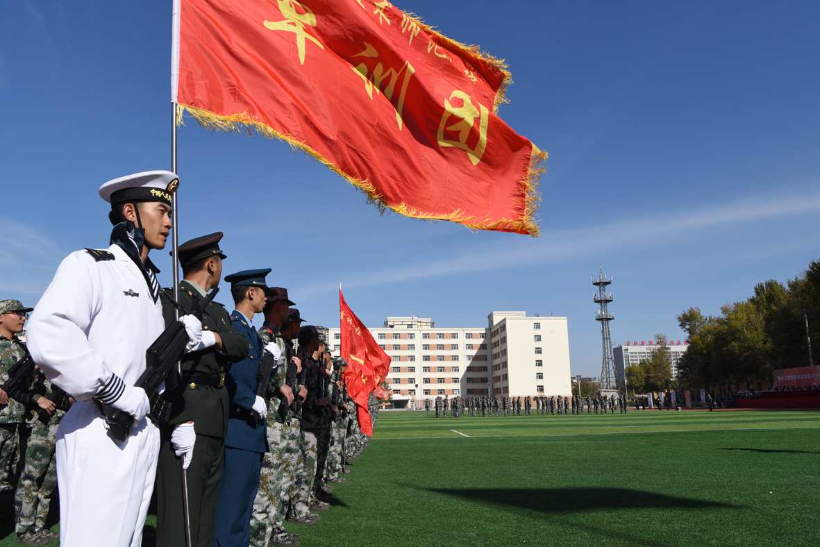 10月19日,学校2018级学生军训成果暨开学典礼于主校区操场隆重举行。学校党委书记栾立明、校长杨晓东、纪委书记左伟、副校长张鹏、党委副书记陈景翊、副校长宋立军,党委常委张新华、张存贵,各有关处室的负责人、各教学分院的院长、军训团全体成员出席大会。陆军装甲兵学院士官学校教练营营长马志超及教育厅体卫艺处处长杜颗亮作为特邀嘉宾莅临现场。大会由陈景翊主持。