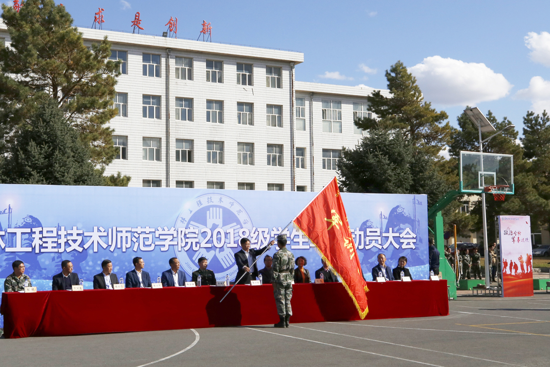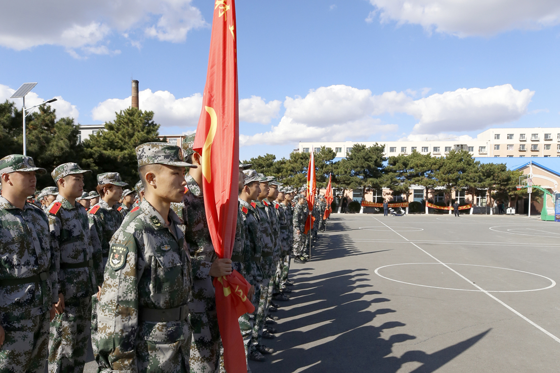 军训动员大会在庄严的国歌声中拉开序幕。南立飞宣读了学校党委关于成立军训团及设立临时党总支的决定。党委书记栾立明向军训团授军训团团旗,宣布本期军训工作正式开始。