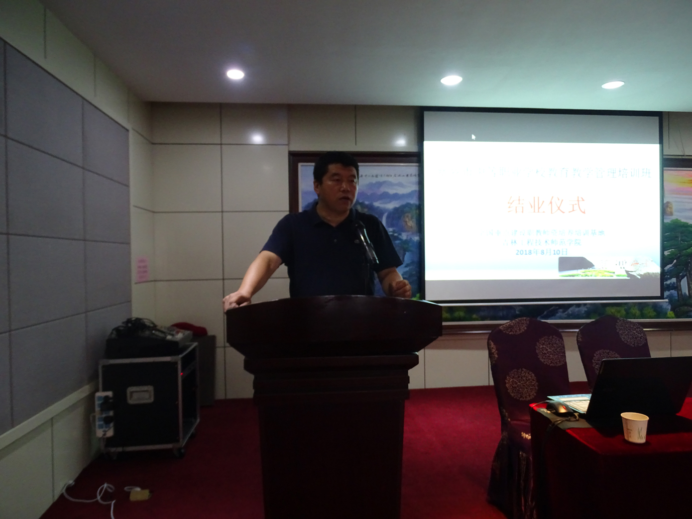 邹葳主任代表新乡市教育局对培训基地的工作给予的充分肯定,同时,要求全体学员回到工作岗位中,要将所学知识与技能应用到工作中,全面提高新乡市职业教育教学管理水平。
