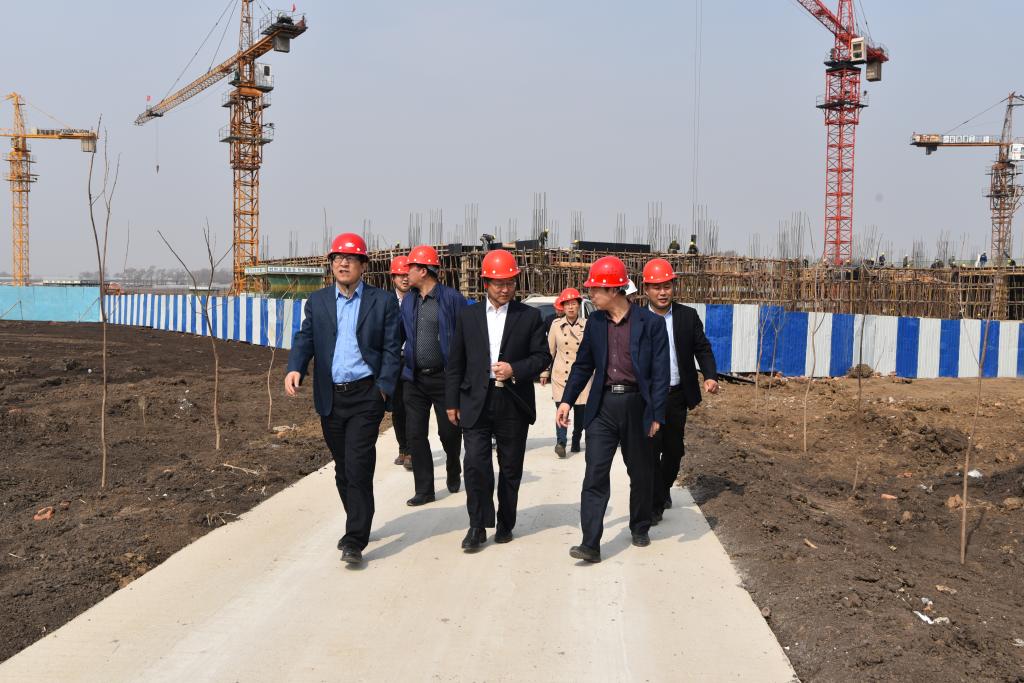 4 月20 日上午,德惠市市委书记左毅,市人大常委会主任王克瑜,市委副书记、市长赫哲,市政协主席于树军,市委副书记赵文波,市委常委、常务副市长白松巍,副市长刘海涛等领导同志与best365党委书记栾立明、校长杨晓东、副校长曹国亮一同考察了新校区建设情况。