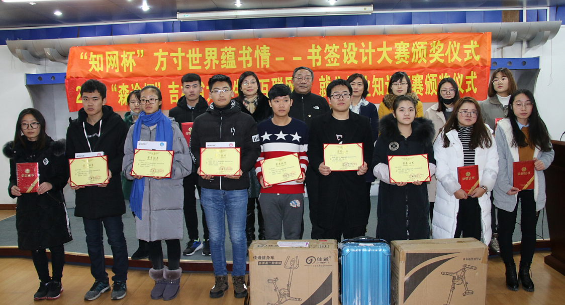 12月12日,图书馆在第三教学楼多功能厅举行了“知网杯”方寸世界蕴书情——书签、馆标设计大赛和2017“森途杯”吉林省大学生“互联网+”就业创业知识竞赛两项大型读者活动的颁奖仪式。