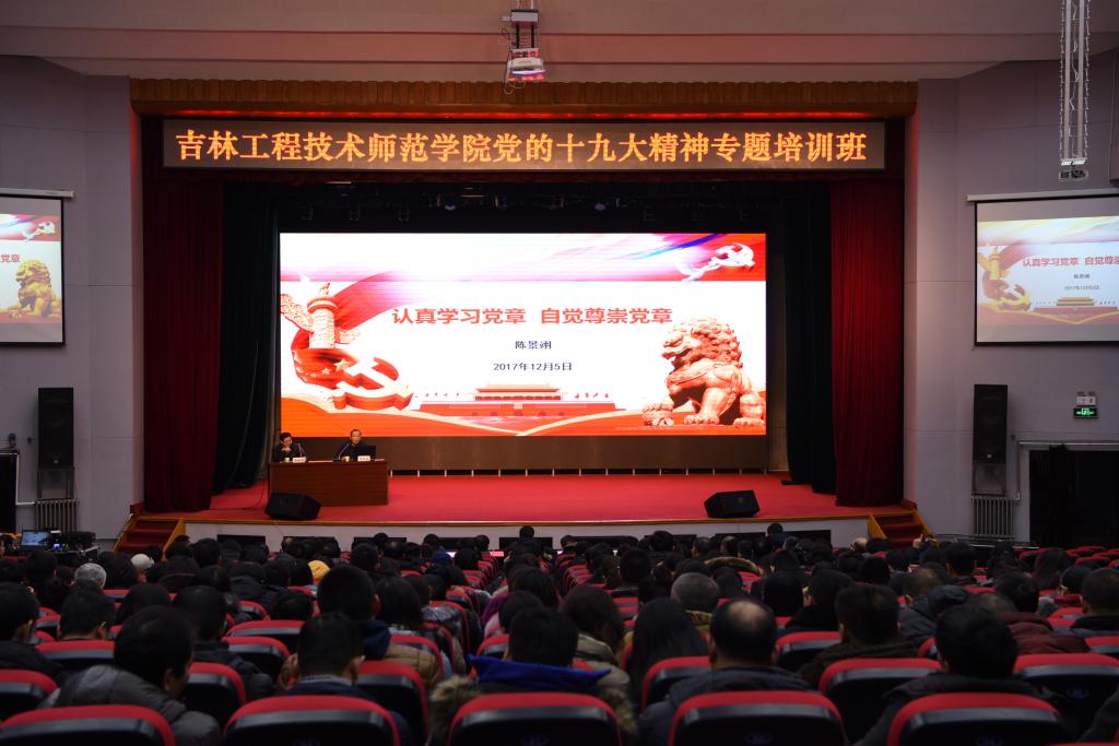 12月5日下午,学校举办党的十九大精神专题培训班,学校领导及全校党员参加培训。
