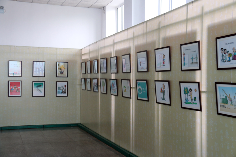 12月4日,由学校廉政文化宣教中心主办,纪检监察办公室、党委宣传部、艺术学院、团委承办的“倡廉洁扬正气——学习贯彻党的十九大精神廉政漫画展”在图书馆一楼大厅开始展出。