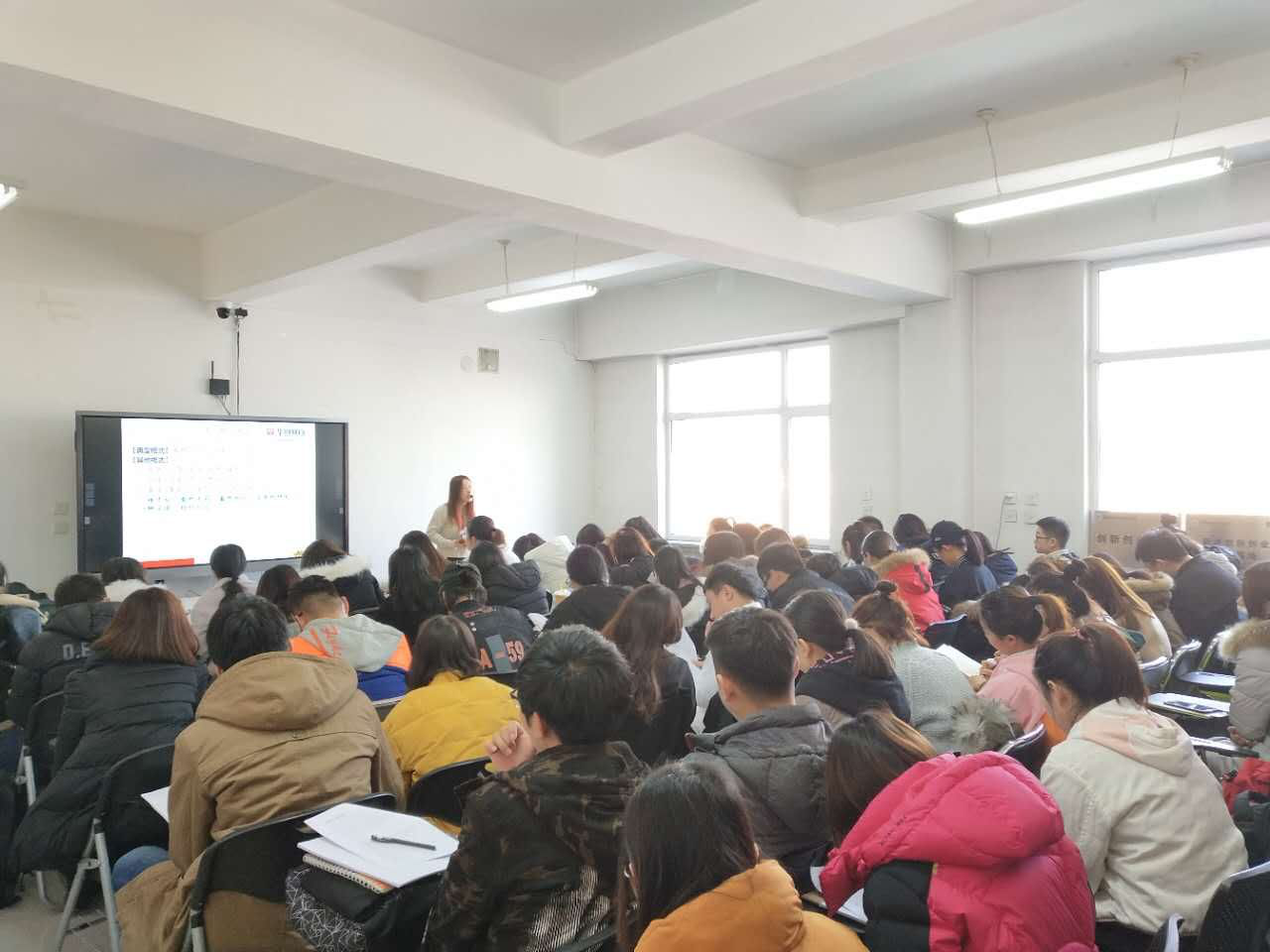 培训于2017年11月21日正式开班,来自全校11个分院共72名2018届毕业生免费参加了此次培训,其中包括报考2017年长春市党政综合类选调生的20名学生党员。培训主要以判断推理、数量关系、言语理解、常识判断、申论等五大模块为主要内容,每个模块配备了专业的培训教师主讲,学生们的求知欲望极高,学习热情高涨,无缺席、迟到早退等现象。