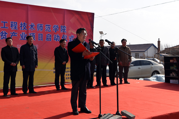栾立明发表了热情洋溢的讲话,表达了学校党委、全体教职工对扶贫攻坚工作的信心与决心。栾立明指出,学校党委对扶贫工作高度重视,充分认识到扶贫工作是关系到全面决胜小康社会的重要政治任务,是关系到廉明村民生和福祉的大事,认真贯彻落实中央、省委扶贫工作精神,在组织领导、人员安排、资金投入、项目支持等方面不断加大工作力度和推进速度,先后派驻了第一书记和驻村工作队,投入扶贫资金100余万元,开展了处级干部包保责任制,大力开发扶贫项目。这次在廉明村举行的扶贫产业项目启动仪式,是学校党委贯彻落实十九大精神打赢扶贫攻坚战的重要举措,也是落实习近平总书记提出的精准扶贫要求持续推进扶贫工作的重要项目安排。