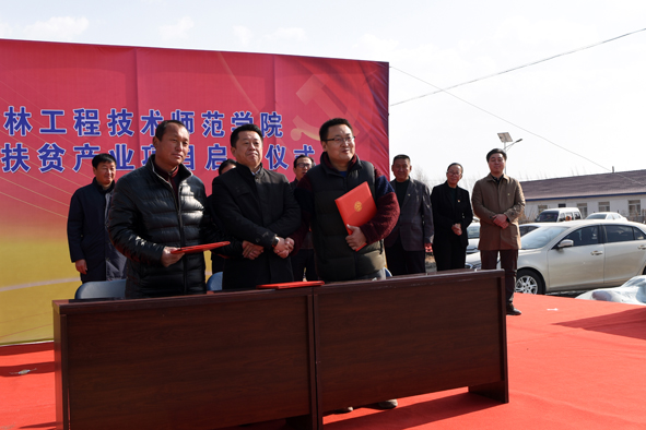 夏友照、宫胜杰、栾立明、杨晓东共同为best365中国官方网站精准扶贫产业项目揭牌。