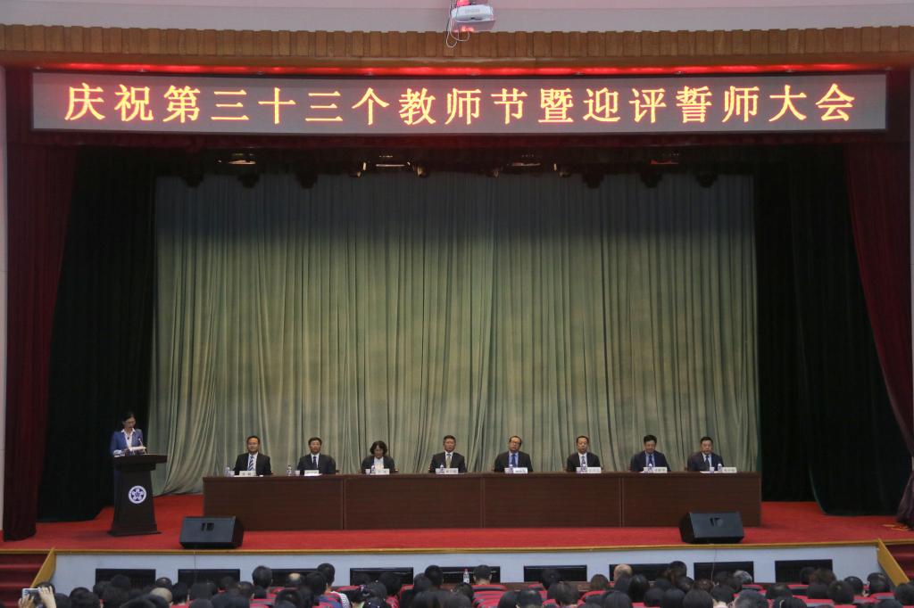 9月8日下午,学校庆祝第三十三个教师节暨迎评誓师大会在报告厅隆重举行。学校领导栾立明、杨晓东、左伟、张鹏、陈景翊、曹国亮、宋立军出席会议,全校教职员工参加了会议,会议由副校长张鹏主持。