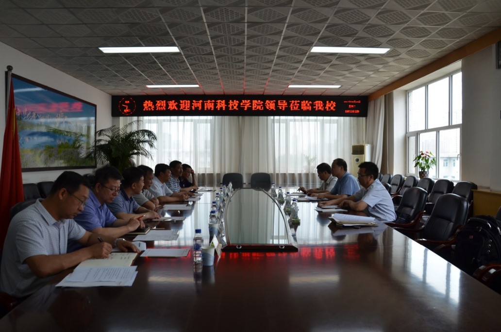 6月20日上午,由河南科技学院副校长梅宪宾率领的该校一行4人代表团来best365考察,best365党委副书记陈景翊、副校长宋立军,教务处处长张存贵、学科办主任刘福满、科研处处长崔亚新、人事处处长唐厚军、学工部部长王宝龙参加了会议,宋立军主持会议。
